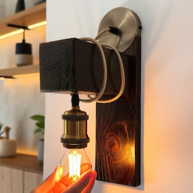 Etichete: Lampa perete lemn ars handmade | Stil rustic-industrial