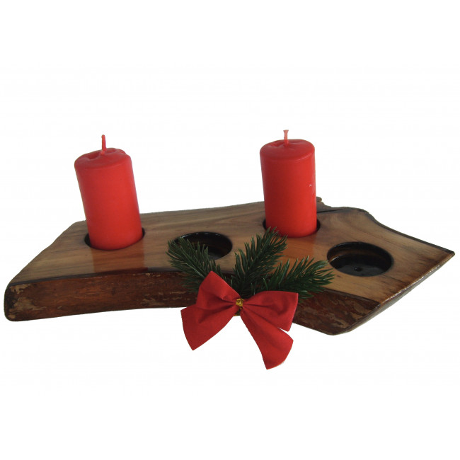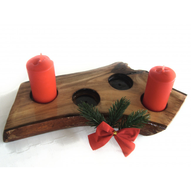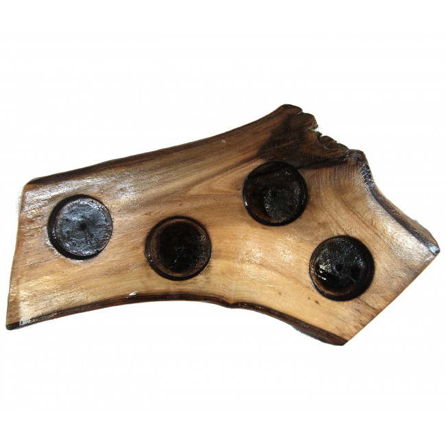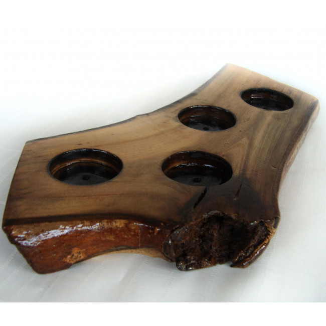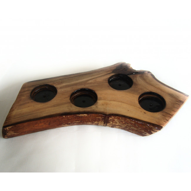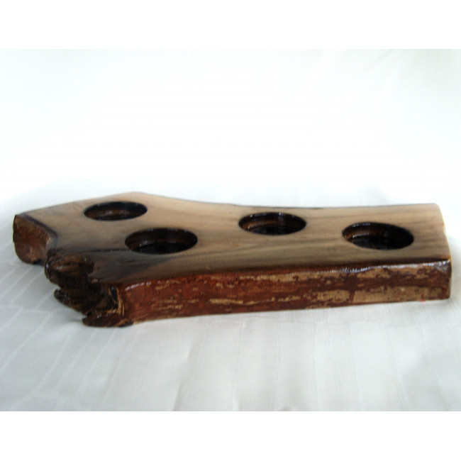 Suport decorativ din lemn pentru 4 lumanari – piesa rustica, lacuita, design natural